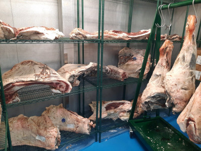 Did you know this is what we do now at our multi-million dollar, No Bull processing facility? Here we are dry-aging 1000 lbs of beef steers. This is how we are different from any grocery store and any meat market in New Mexico. These have been aging for 40 days and going to finish up at 80 days. This will achieve the highest quality, tenderness and a rich beefy robust flavor. And that's No Bull Prime Meats!
